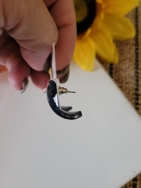 Celebrate the quiet beauty of the night sky with “Lunar Phases”, a pair of handcrafted polymer clay earrings inspired by the shifting faces of the moon. These midnight blue studs are embedded with silver shimmer and feature a graceful arc of textured impressions that mimic the waxing and waning moon. Finished with a glossy varnish, they reflect light like starlight on a clear night — making them perfect for dreamers, stargazers, and lovers of celestial elegance.