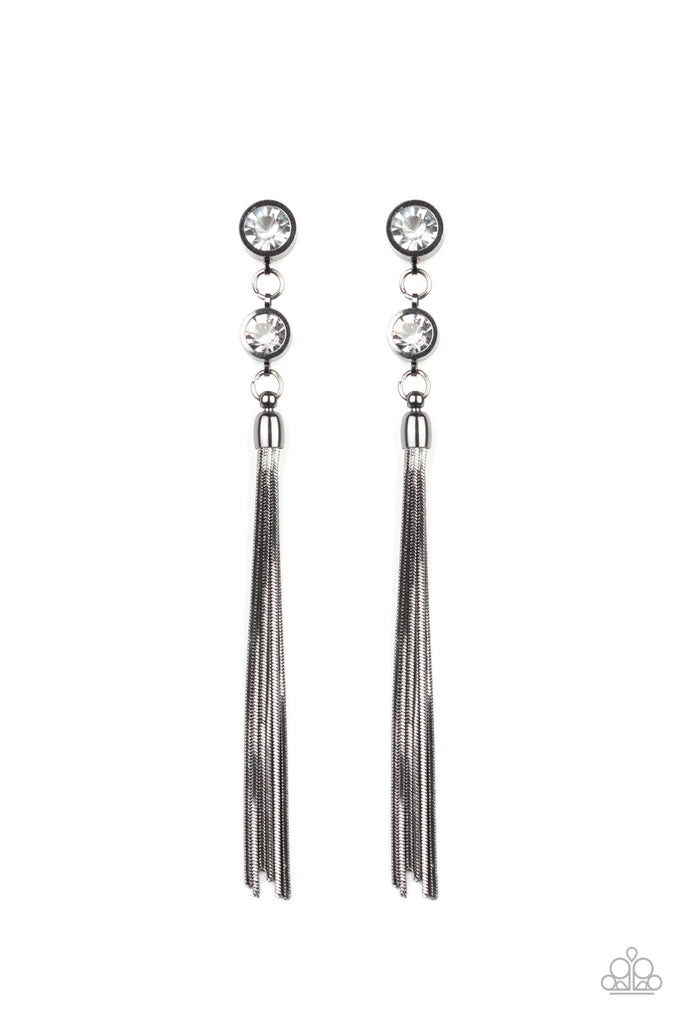Tassel Twinkle - Black-Paparazzi Earrings (PZ-654)