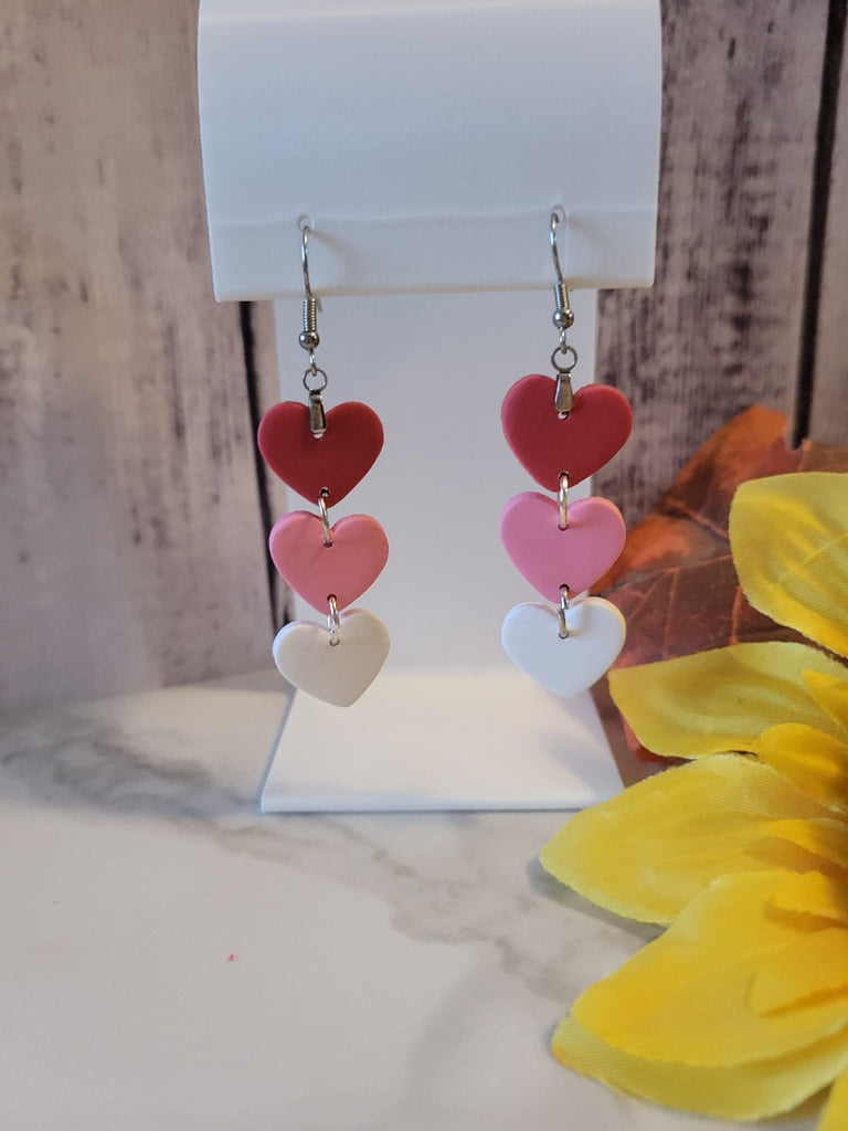 Fall in love three times over with “Triple Crush,” a charming drop earring set featuring stacked hearts in romantic hues. Hand-sculpted from polymer clay, these earrings are sweet, stylish, and full of personality—ideal for date nights, heartfelt gifts, or adding a touch of love to your everyday.