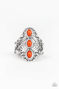 Paparazzi Wide Flex Back Ring - Mayan Motif - Orange (R233)