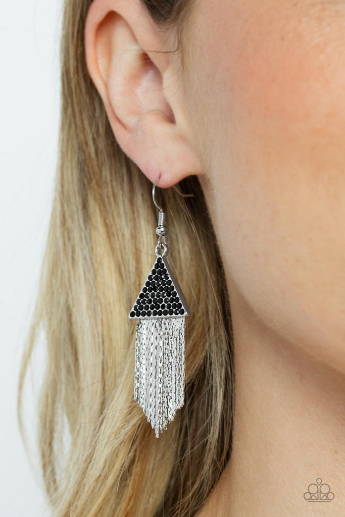 Pyramid SHEEN - Black Paparazzi Earrings (#4580)